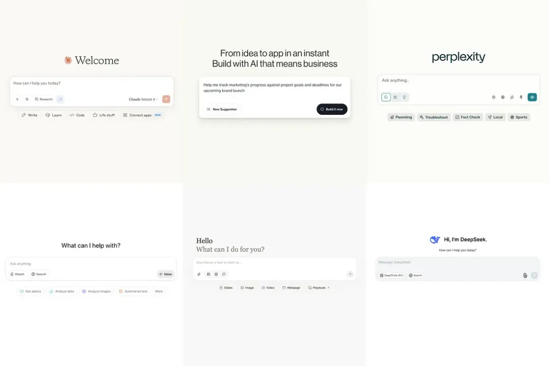 每个AI产品看起来都一摸一样,这个事实让我们感到恐惧。从ChatGPT到Claude, 再到Perplexity, 我们陷入了定式:侧边栏的历史记录、底部的输入框。一个大家心照不宣的真相是:这并非以用户为中心的设计哲学取得了共识,而更可能是设计者集体失职的体现。